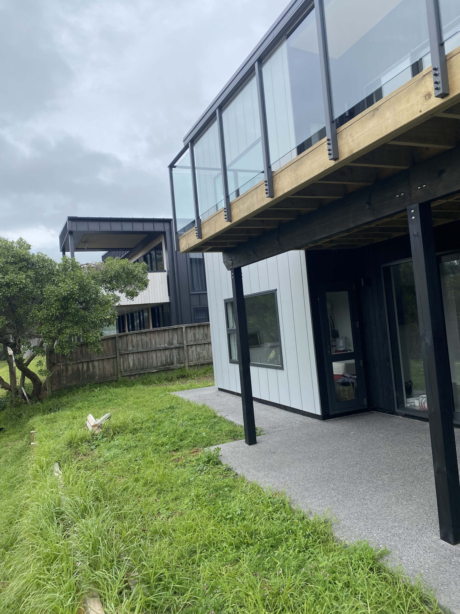 A modern bach with large, open spaces allows plenty of room for the whole family and friends. A must for this bach was to have plenty of decking to maximise the indoor / outdoor flow and to capture the ocean views. The bach has been designed with the ability to Air BNB the bottom floor, effectively meaning it can be used as two separate bachs’ if needed! The Abodo and Stria cladding finishes the exterior look of this bach.