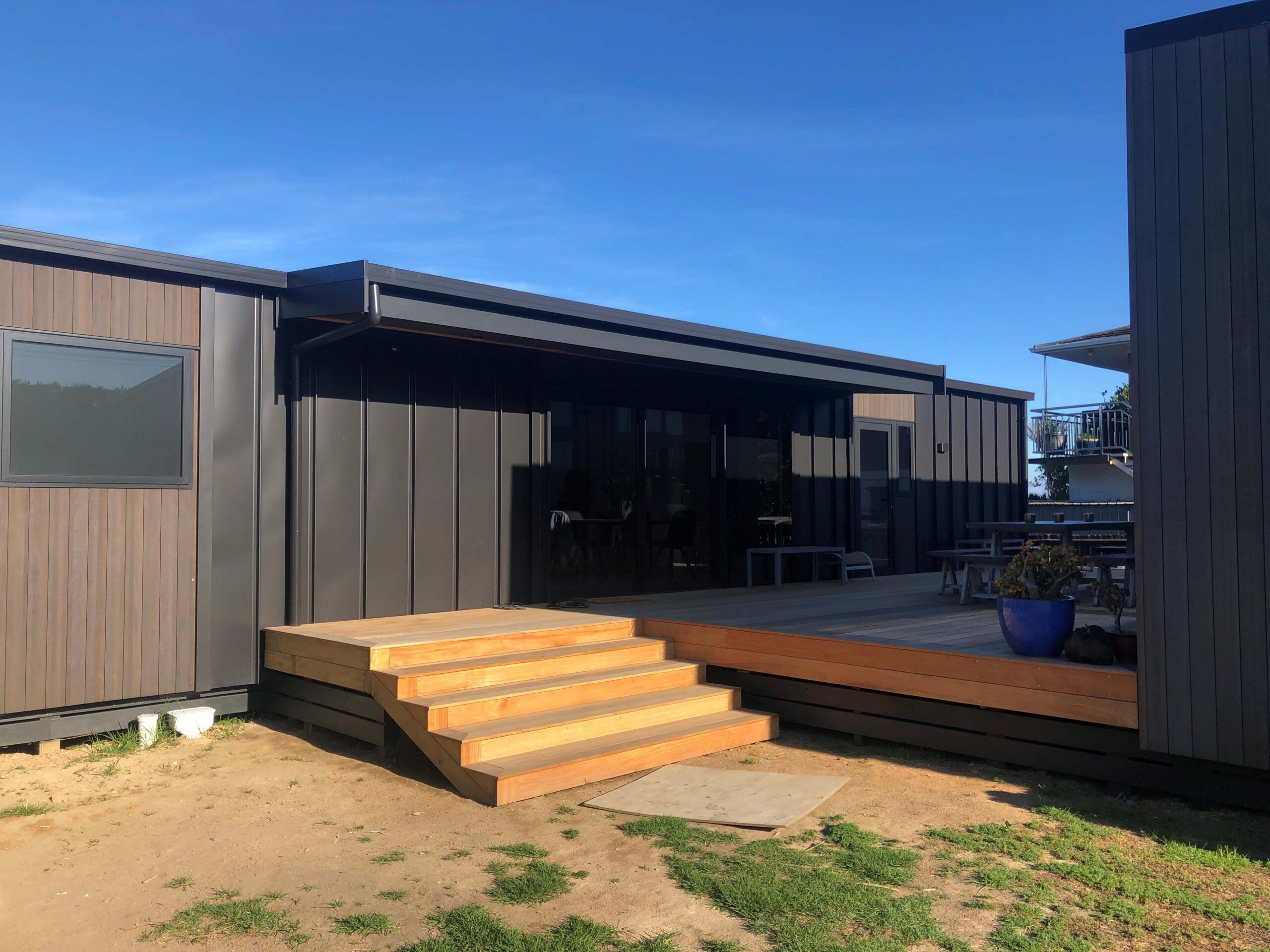 The Matapihi build consisted of a main home with a secondary dwelling connected with a large deck, creating open plan living for the entire family. The design of Matapihi featured our modular plans which were built around the ocean views. This layout provided the family with their own personal space while also maximising indoor outdoor flow with the addition of the deck to create a shared living space.