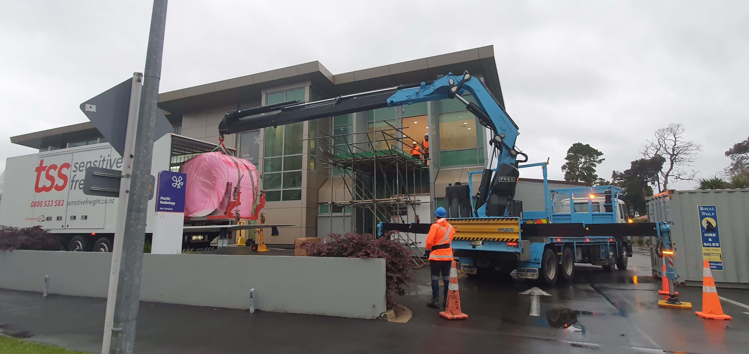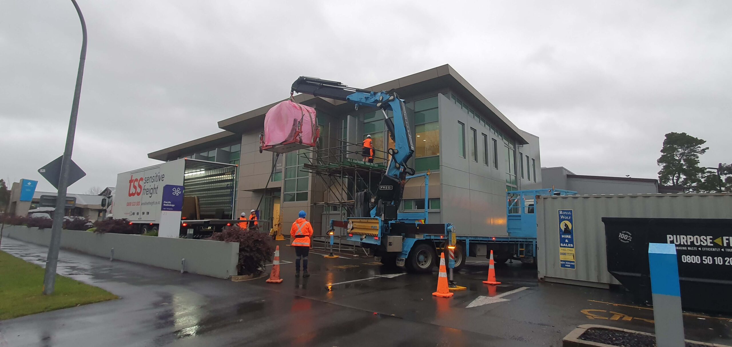 Pacific Radiology requested AHS Group (AHS Construction) to both manage and construct a new fitout to their existing tenancy. This request was built upon our great relationship acquired over the last three years after completing multiple fitouts across the Waikato. The task involved the removal of their existing CT machine and fit a brand-new bigger machine. This came with its challenges such as, the room was located on the second floor of the building and the new machine was too large to fit through the doorways. Our team adapted and a new configuration of the tenancy layout was implemented which the architects provided – Totem Studio Architects.